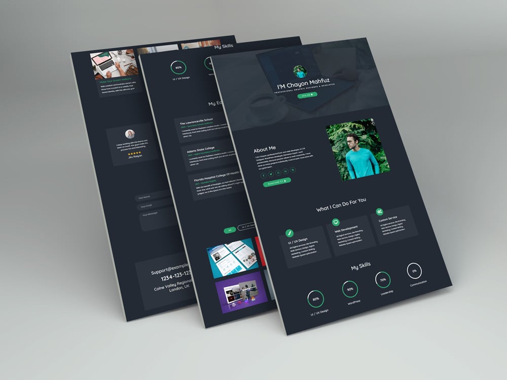 This is a Single Page Personal Portfolio/Resume/CV Template. Responsive for all major Devices. This Modern & Cool template is 100% editable by Elementor Free Version.