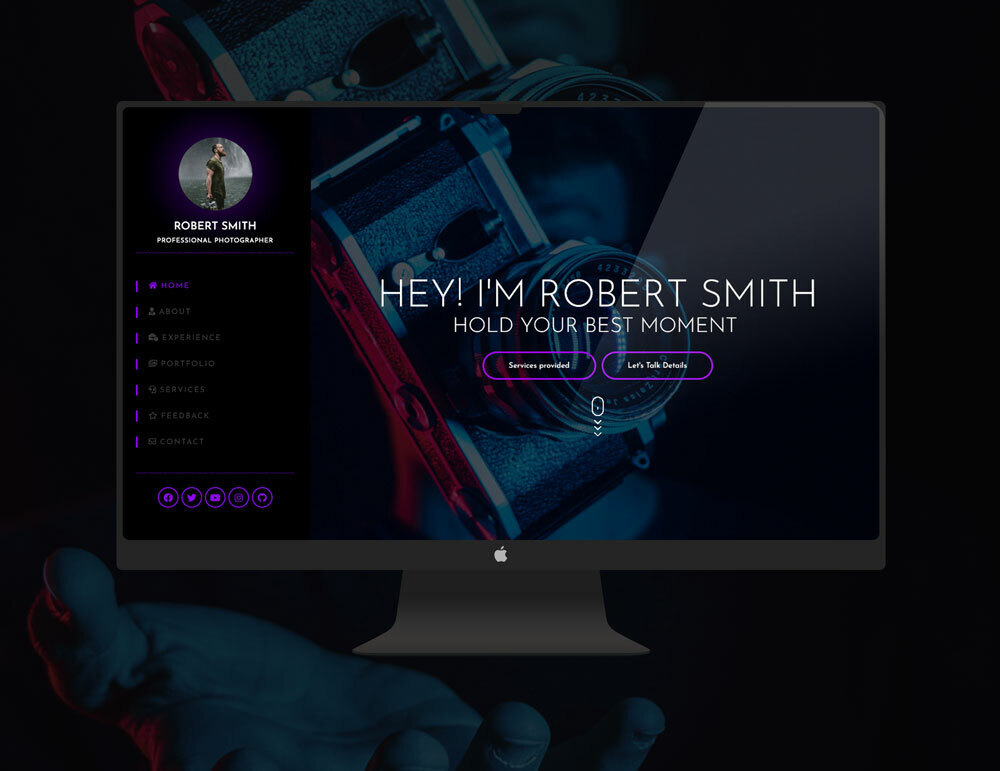 This is a Single Page Photographer Personal Portfolio/Resume/CV Template. Responsive for all major Devices. These Modern & Cool templates are 100% editable by Elementor Pro Version.